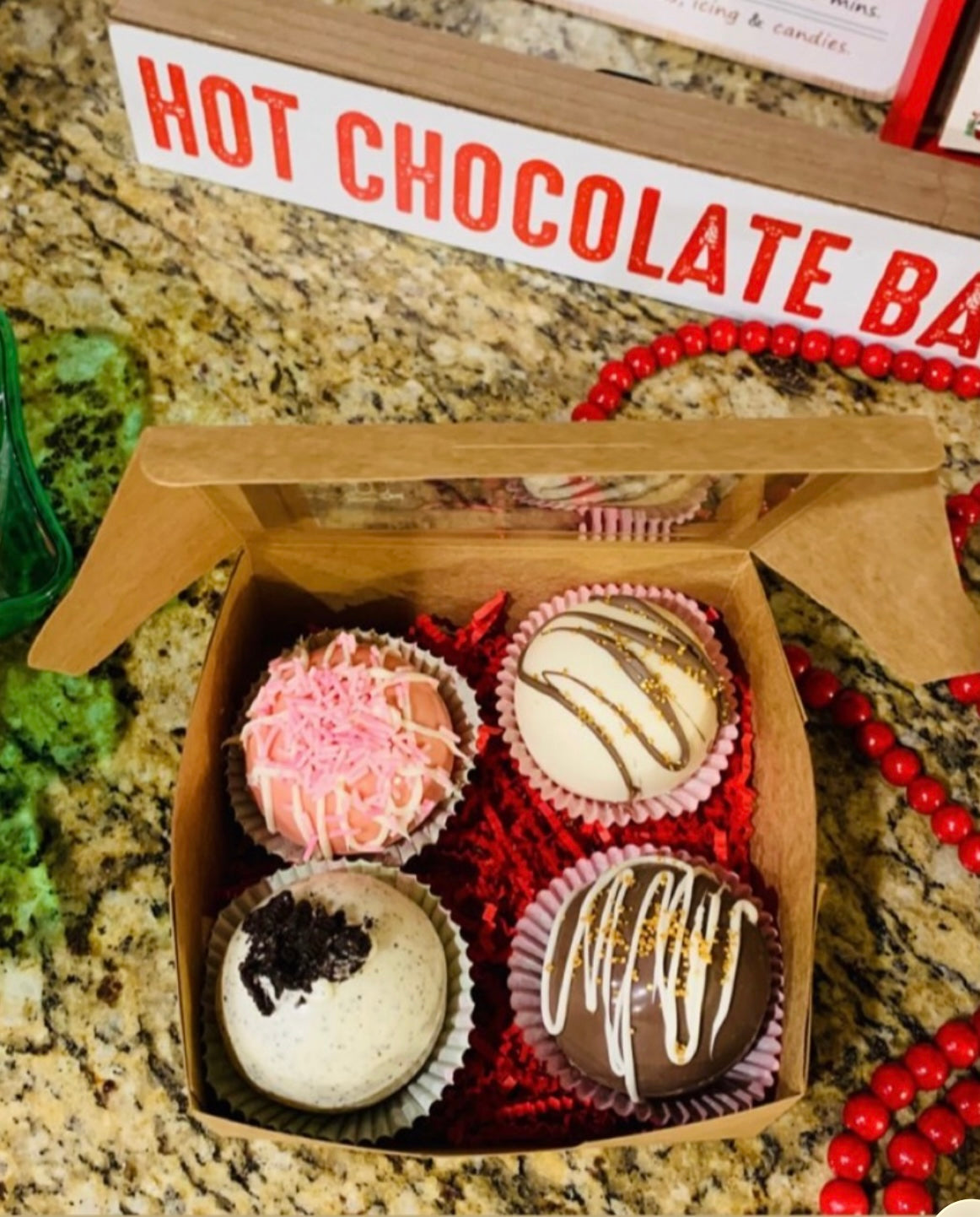 Our coco bombs are delicious and the cups will make you blush! Grab a coco bomb gift set for family, friends or a coworker ! Designs vary depending on what you choose and what we have on hand .We also have non holiday options available as gift sets . Message us with questions. Vegan marshmallows available upon request.
